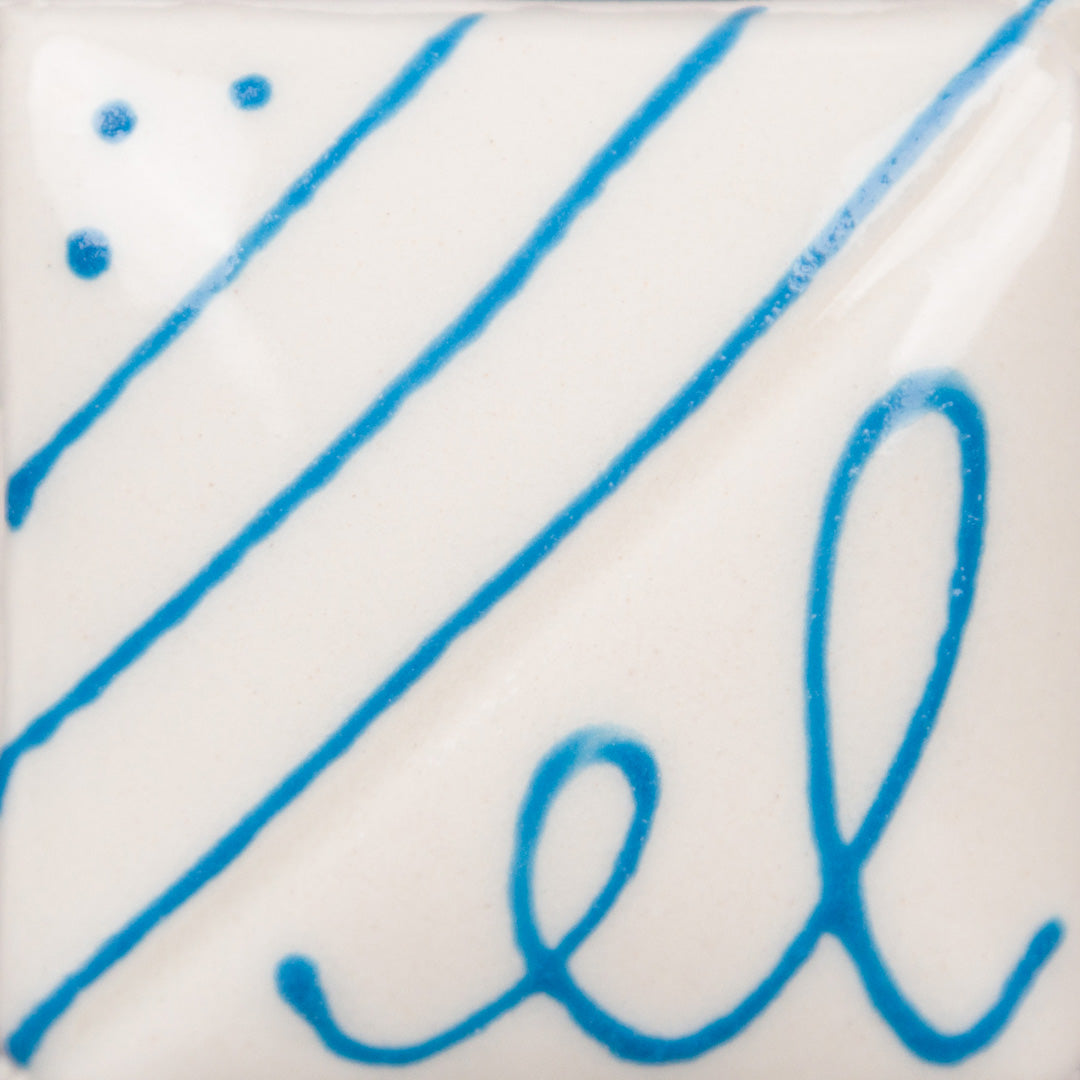Cone 06 oxidation (large photo): Use this versatile product to create bright blue fine detail with lines, dots, and letters.