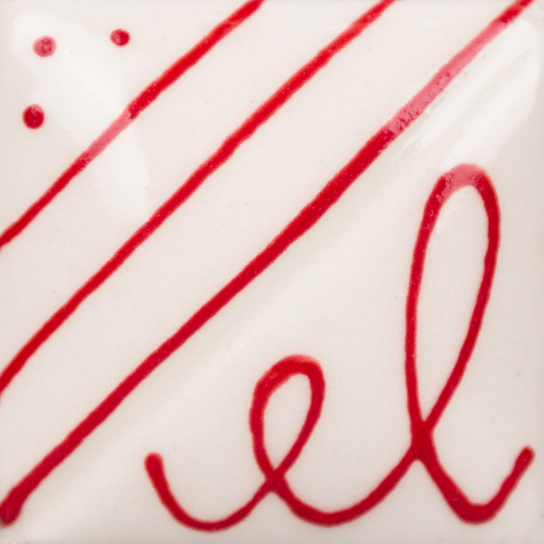 Cone 06 oxidation (large photo): Use this versatile product to create red fine detail with lines, dots, and letters.